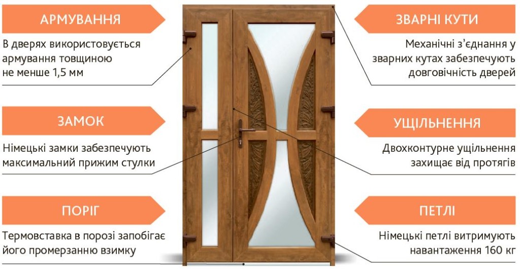 | Замки | Дверні замки «VORNE» з 4-ох точковим прижимом | Німецькі замки BKS або FUHR, з чотирьох точковим прижимом, високого класу якості | Німецькі замки BKS або FUHR, з чотирьох точковим прижимом, високого класу якості |
